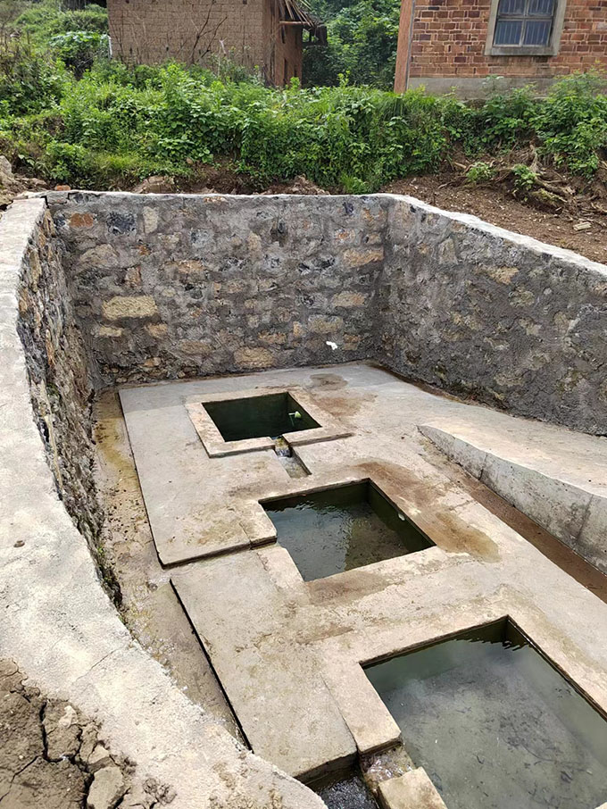 這兩口老水井均修建于上世紀六十年代,由于年久失修,泥沙充填,井邊雜草叢生,漸變荒井。今年8月,為助推鄉(xiāng)村振興,履行企業(yè)的社會責(zé)任,萬鵬建材相關(guān)人員對現(xiàn)場進行了查看,和村支兩委負責(zé)人共同討論研究,決定對老舊水井實施翻新改造修復(fù),把水井按照挑水池、洗菜池、洗衣池等不同類別分類,并對翻新井口加以美化,使老水井煥然一新,既改善了新農(nóng)村面貌,又大大方便了周邊村民的生產(chǎn)生活用水。