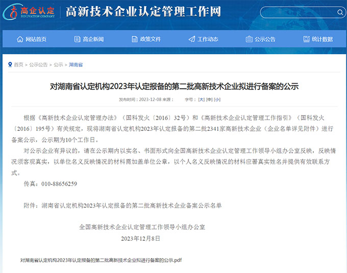 2023年12月,湖南省認定機構2023年認定報備的第二批高新技術企業(yè)備案名單公示,湖南鏈城數據服務有限公司赫然在列,公司申報國家級高新技術企業(yè)獲批通過。